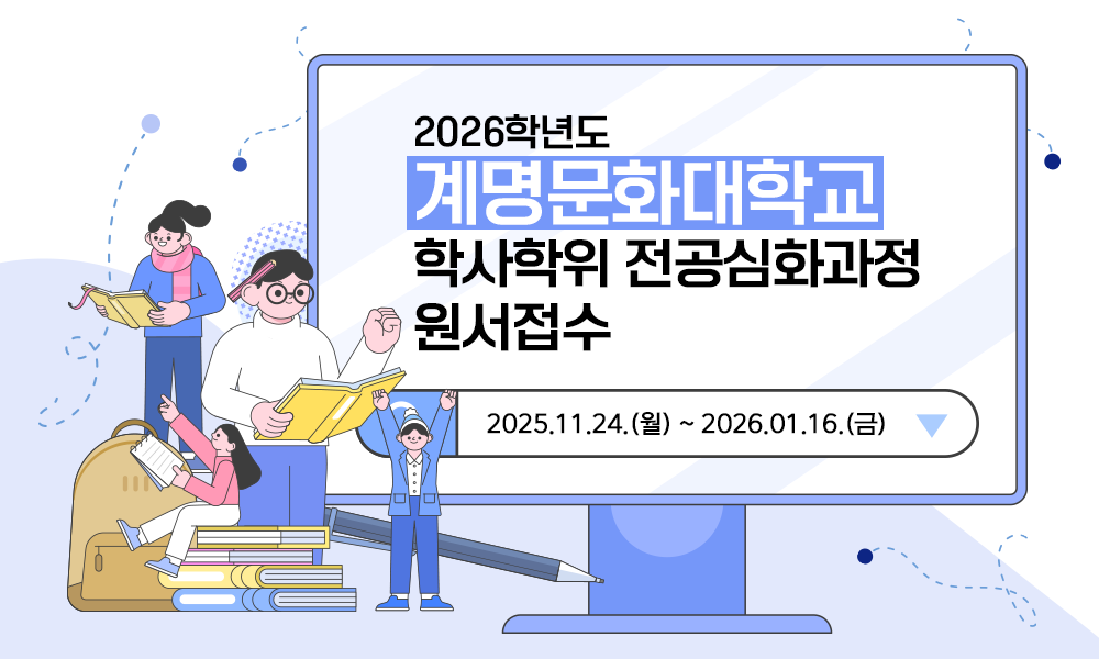 <박람회 정보> ◎ 박람회 명 : 2026학년도 대구·경북 전문대학 수시모집 입학정보 박람회 ◎ 참가대학 : 계명문화대학교 포함 대구·경북지역 19개 전문대학교 - 참가 대학명 가나다 순 : 가톨릭상지대학교, 경북과학대학교, 경북보건대학교, 경북전문대학교, 계명문화대학교, 구미대학교, 대경대학교, 대구공업대학교, 대구과학대학교, 대구보건대학교, 문경대학교, 선린대학교, 수성대학교, 안동과학대학교, 영남외국어대학교, 영남이공대학교, 영진전문대학교, 포항대학교, 호산대학교 ◎ 박람회 내용 1) 전공 및 진로 상담 2) 대학 소개 3) 수시모집 원서접수 ※ 특전 : 해당 박람회에서 ‘계명문화대학교’ 수시모집 1차 원서접수자 전형료 및 원서접수료 감면 ◎ 장소 : 대구상원고등학교 체육관(상원관) (대구 달서구 월배로 241) / 대구지하철 1호선 상인역 7번출구 도보 5분 거리 ◎ 일정 1) 2025.09.12.(금)(1일차) - 14:00 ~ 20:00 2) 2025.09.13.(토)(2일차) - 10:00 ~ 17:00 ◎ 박람회 안내 및 참가자 사전 등록 페이지 : https://2026ipsigo.kr ※ 해당 페이지에서 ‘대구·경북권 박람회 사전신청 바로가기’ 메뉴에서 신청 ◎ 주최·주관 : 한국전문대학교육협의회, 한국전문대학교무입학처장협의회, 한국전문대학입학관리자협의회 ◎ 후원 : 교육부 ◎ 문의 : 계명문화대학교 입학팀(053-589-7800)